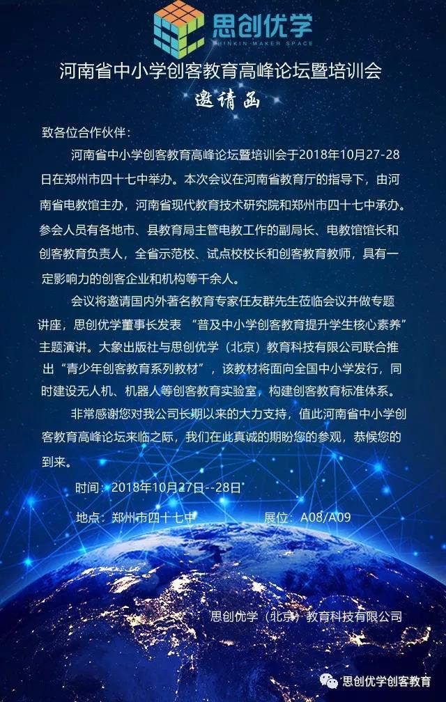 河南省中小學(xué)創(chuàng)客教育高峰論壇 邀請(qǐng)函