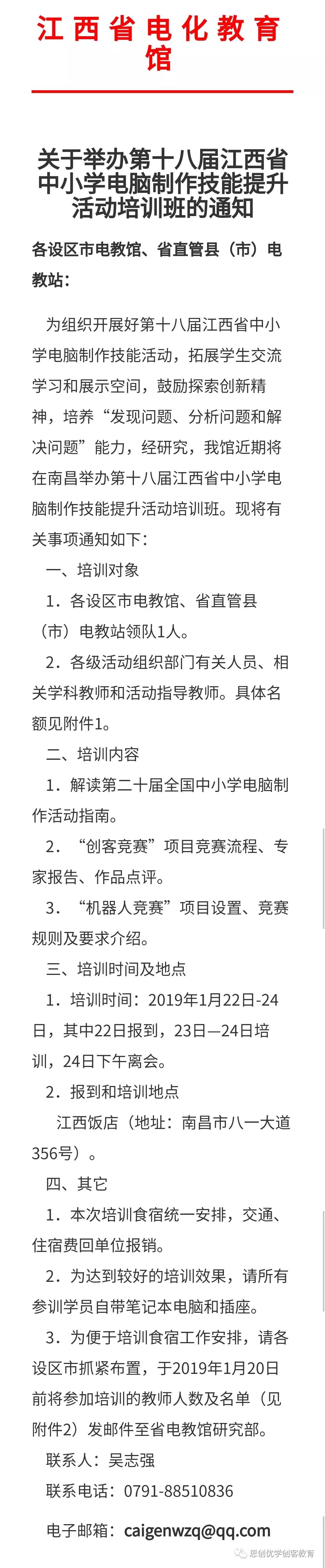 同時(shí)為組織開(kāi)展好第十八屆江西省中小學(xué)電腦制作技能活動(dòng),拓展學(xué)生交流學(xué)習(xí)和展示空間,鼓勵(lì)探索創(chuàng)新精神,培養(yǎng)“發(fā)現(xiàn)問(wèn)題、分析問(wèn)題和解決問(wèn)題”能力,將配合江西省電化教育館做好“第十八江西省中小學(xué)電腦制作技能提升活動(dòng)培訓(xùn)班”開(kāi)展工作通知如下: