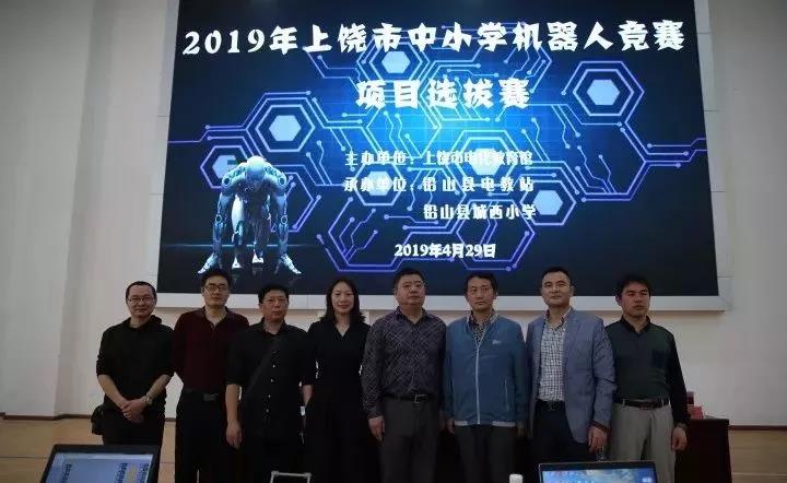 為推動中小學創(chuàng)客教育普及發(fā)展,切實提升中小學機器人技能水平,2019年4月29日,上饒市中小學機器人競賽項目選拔賽在鉛山縣城西小學成功舉行。本次競賽由上饒市電化教育館主辦,鉛山縣電教站承辦,全市共有81支隊伍124名學生參加項目選拔賽。江西省電化教育館培訓部主任曾尚峰、上饒市電化教育館書記周方鑫、鉛山縣教體局副局長張福蓮等出席了本次活動,活動得到鉛山縣城西小學大力支持。