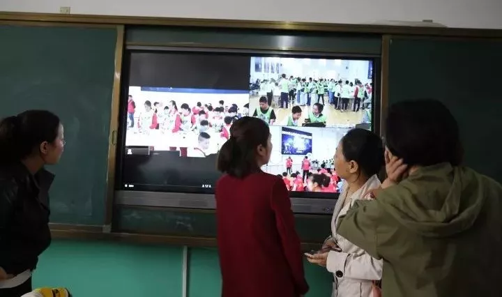 指導老師和學生家長在休息間看直播