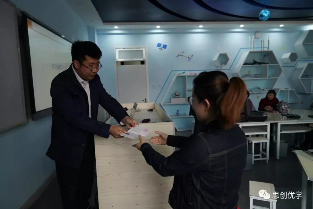 思創(chuàng)優(yōu)學(xué)(北京)教育科技有限公司副總王立強為優(yōu)秀教師頒發(fā)專業(yè)技術(shù)證書