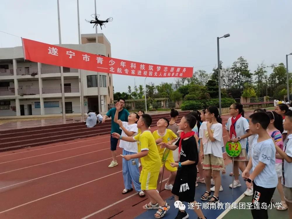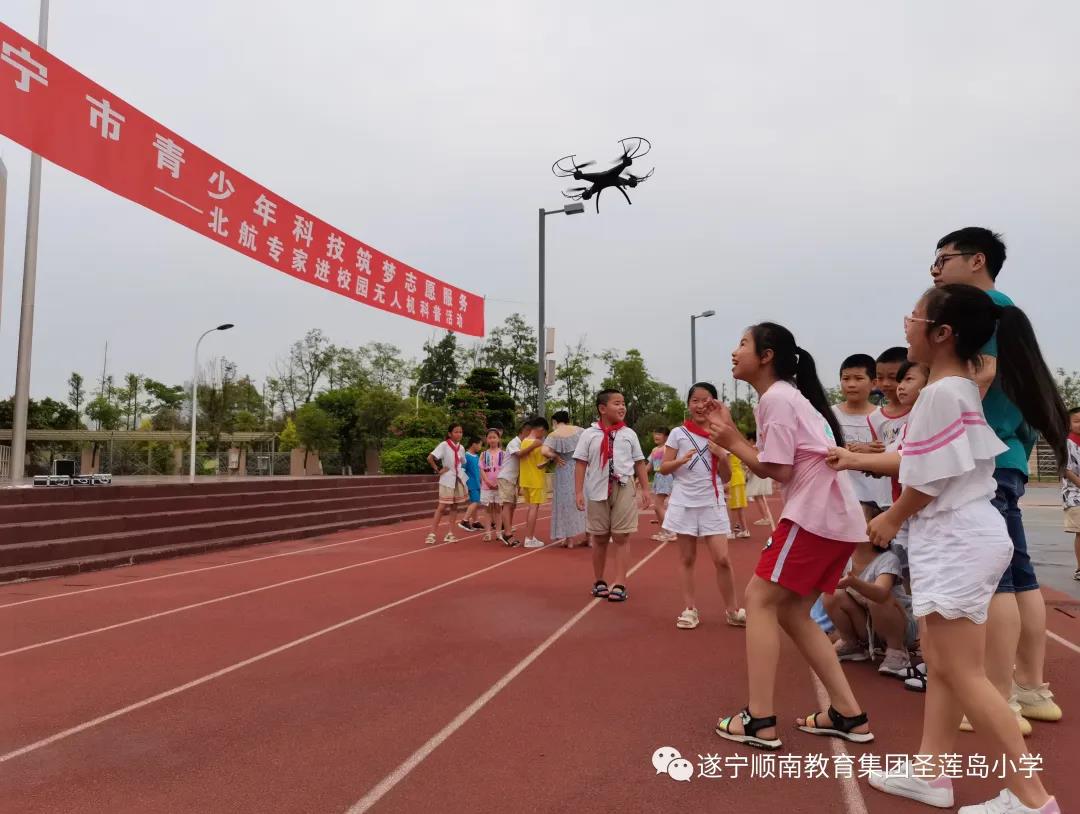 2020年6月15日,由遂寧市委宣傳部、遂寧市文明辦登記備案,遂寧市教體局推薦的“遂寧市首批志愿服務(wù)重點(diǎn)項(xiàng)目——青少年科技筑夢(mèng)志愿服務(wù)、北航專家進(jìn)校園無人機(jī)科普活動(dòng)”走進(jìn)圣蓮島小學(xué),為同學(xué)們提供零距離接觸科學(xué)的機(jī)會(huì),激發(fā)了大家學(xué)習(xí)科學(xué)、走近科學(xué)的濃厚興趣,為圣小師生帶來了一場(chǎng)精彩絕倫的飛行盛宴。