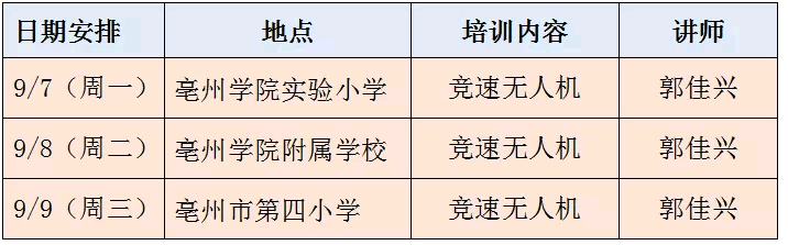 無(wú)人機(jī)活動(dòng)作為特色參與展示,每個(gè)學(xué)校需選拔2名以上的同學(xué)參加,各學(xué)校都積極的組織學(xué)生參加了本次培訓(xùn),各位老師也都做好了充足的準(zhǔn)備,本次培訓(xùn)活動(dòng)以無(wú)人機(jī)障礙競(jìng)技賽展開(kāi),由郭佳興老師主講,為期三天,為了方便大家培訓(xùn),活動(dòng)地點(diǎn)放在了不同的學(xué)校,每學(xué)校一天。
