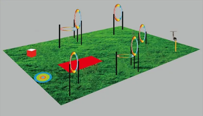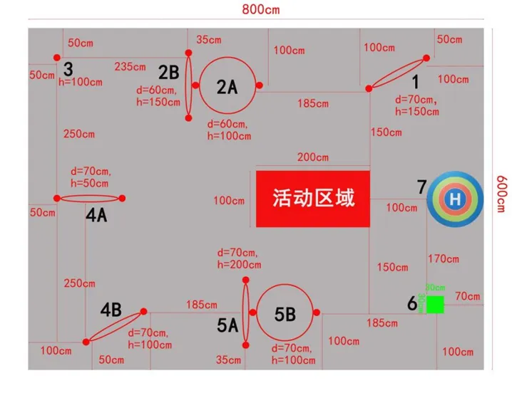 1、起飛區(qū)(降落區(qū)):起飛區(qū)放置一塊停機(jī)坪,需在該區(qū)域操控?zé)o人飛行器起飛;所有障礙穿越完畢后需操控?zé)o人飛行器沿指定路線在降落區(qū)域降落。