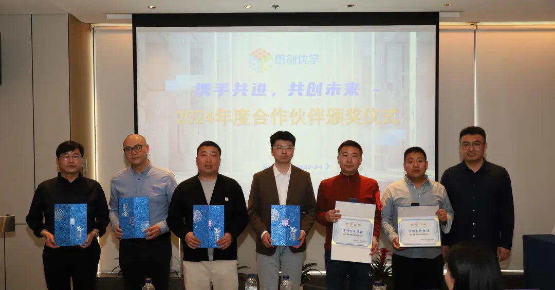 馬博總經(jīng)理及聯(lián)合創(chuàng)始人曹慶豐、王立強(qiáng)為2024年度的卓越合作伙伴和優(yōu)秀合作伙伴頒獎(jiǎng)。