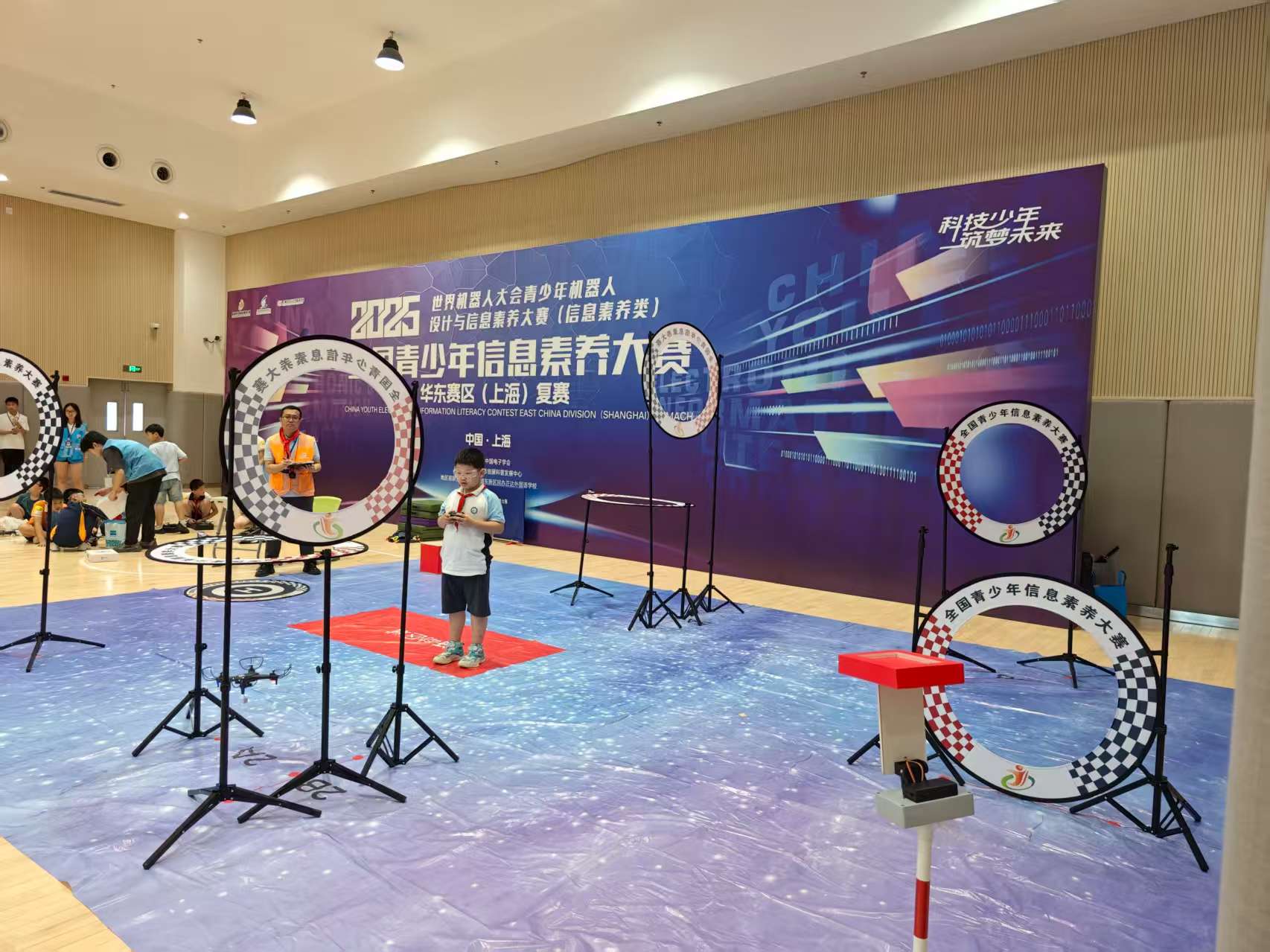 線下賽在上海浦東新區(qū)民辦正達(dá)外國語學(xué)校的多個場地同時進(jìn)行,選手們在賽場上專注投入,充分發(fā)揮自己的創(chuàng)意和技能。創(chuàng)意工程主題賽中,選手們巧妙運用各種材料,搭建出富有創(chuàng)意的作品;智能運輸器開源主題賽里,他們操控著自己設(shè)計的運輸器,完成各項任務(wù),展現(xiàn)出較強(qiáng)的實踐能力和創(chuàng)新思維。