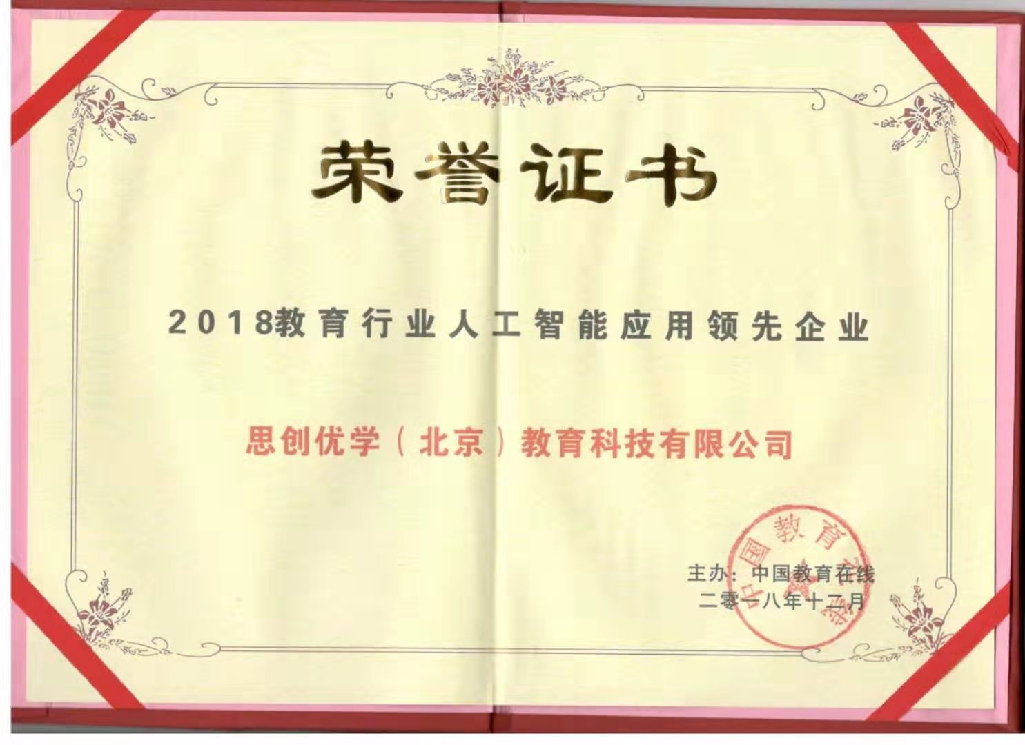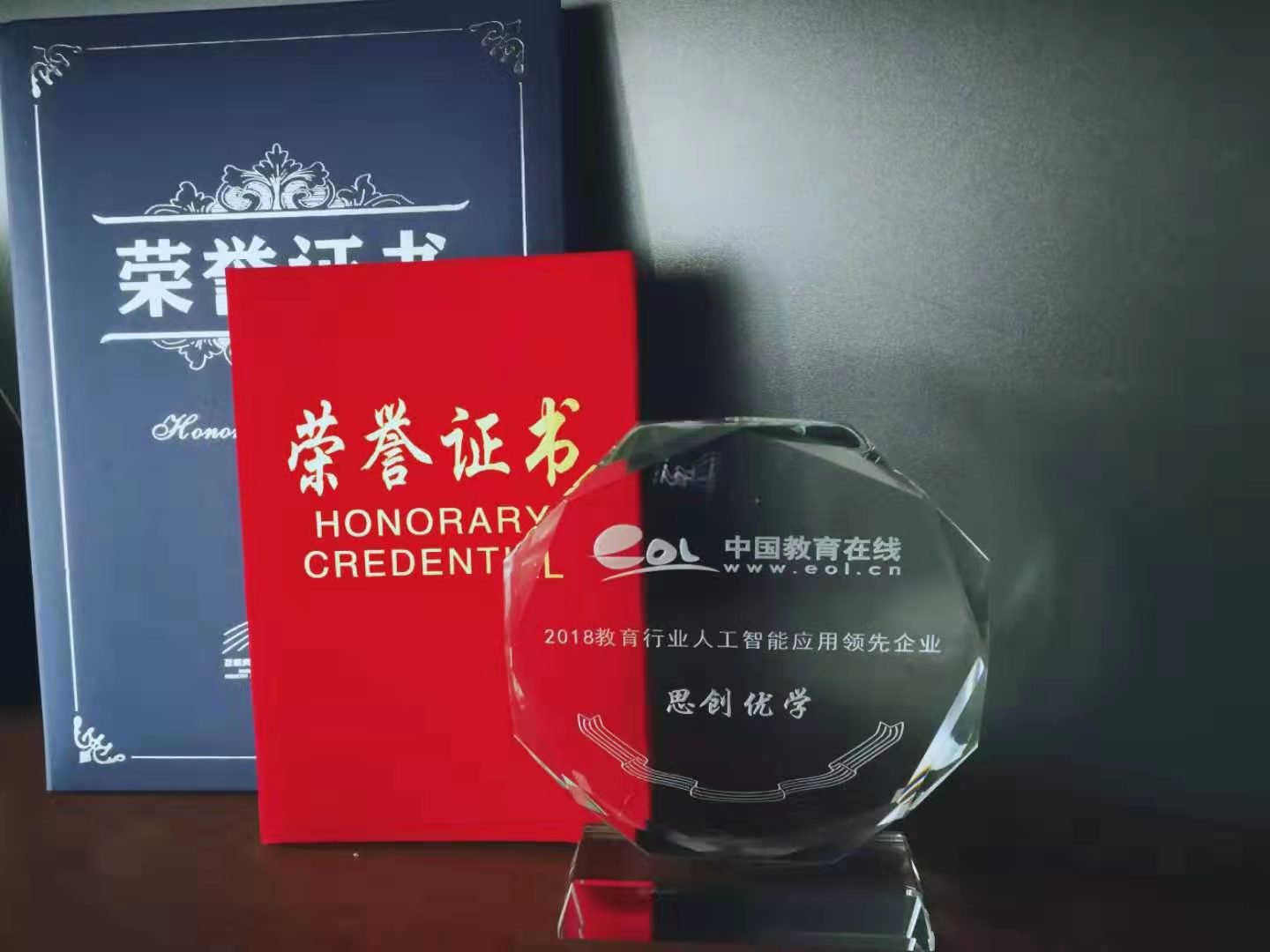 榮獲中國教育在線2018年教育行業(yè)人工智能應(yīng)用領(lǐng)先企業(yè)